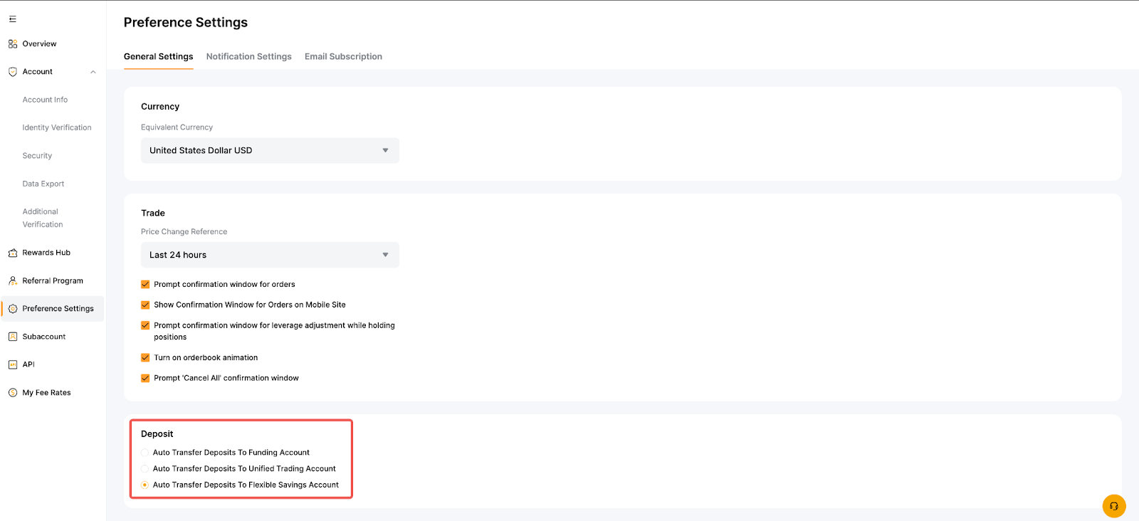 3. How can I change my deposit account from the Funding Account to the Unified Trading Account?
