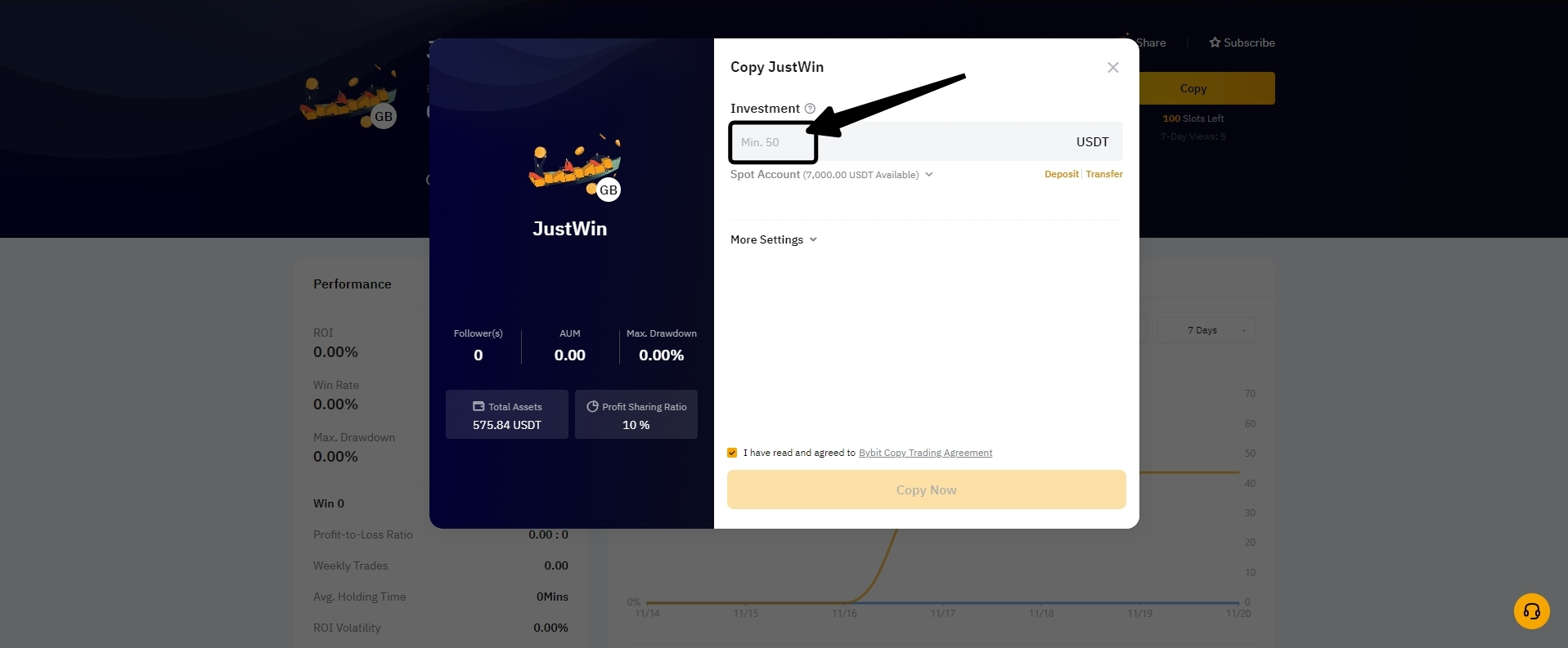 Read More | The minimum investment amount is 50 USDT. Master Traders can set the minimum required investment amount for their followers. |