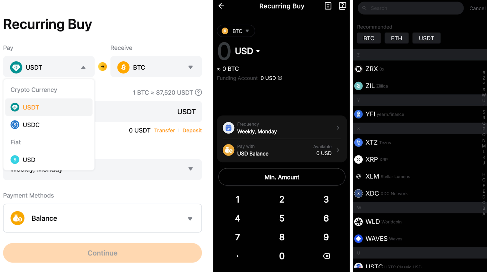 Please note that we will not partially deduct any funds, and your order will only be successfully completed if you have sufficient balance in the fiat currency you would like to pay for your Recurring Buy plan.