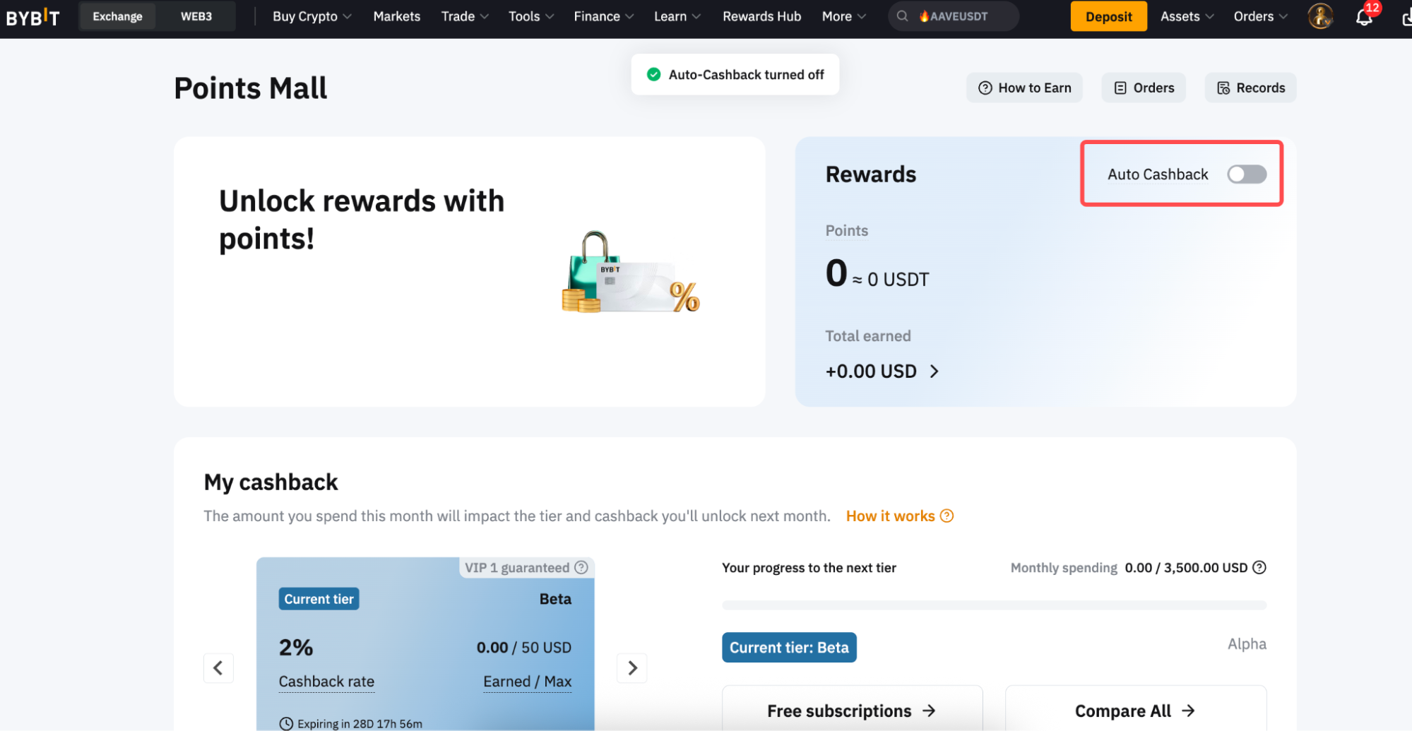 Here’s a step-by-step guide for activating Auto Cashback with Rewards Points From your Bybit Pay and view your past redemption records