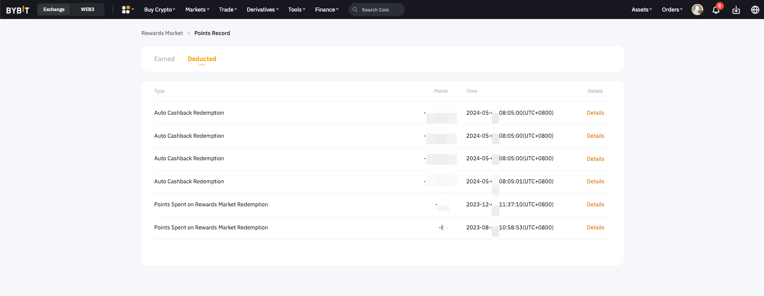 Step 3: Click on the Deducted tab to locate the cashback redemption record. You can also click on Details to view the detailed information.
