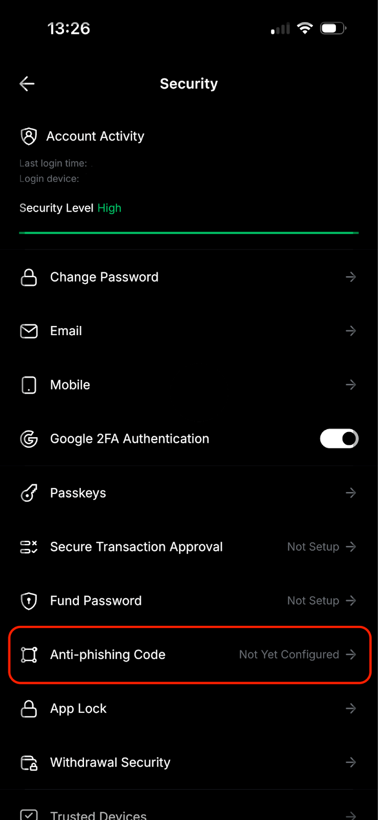 5. Set Up Anti-phishing Code