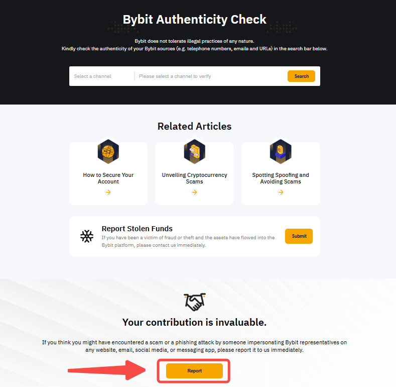 2. Go to the Authenticity Check page, click Report, and submit a report for further investigation.
