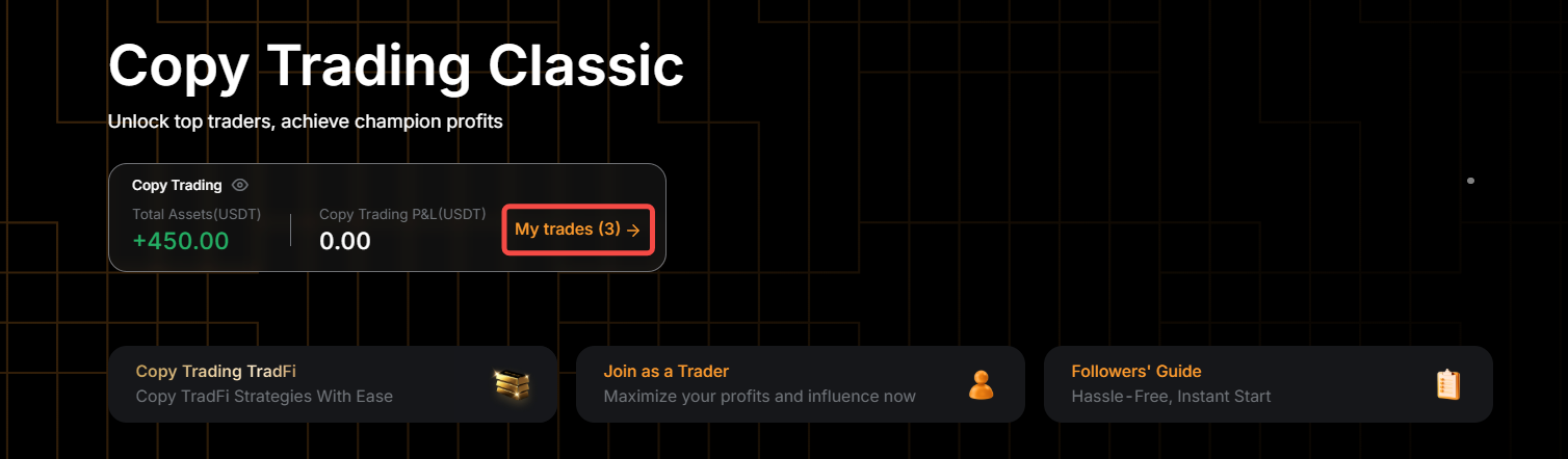 Step 1: To view your copied positions, click on My Trades on the Copy Trading Classic page to enter User Center (Follower).