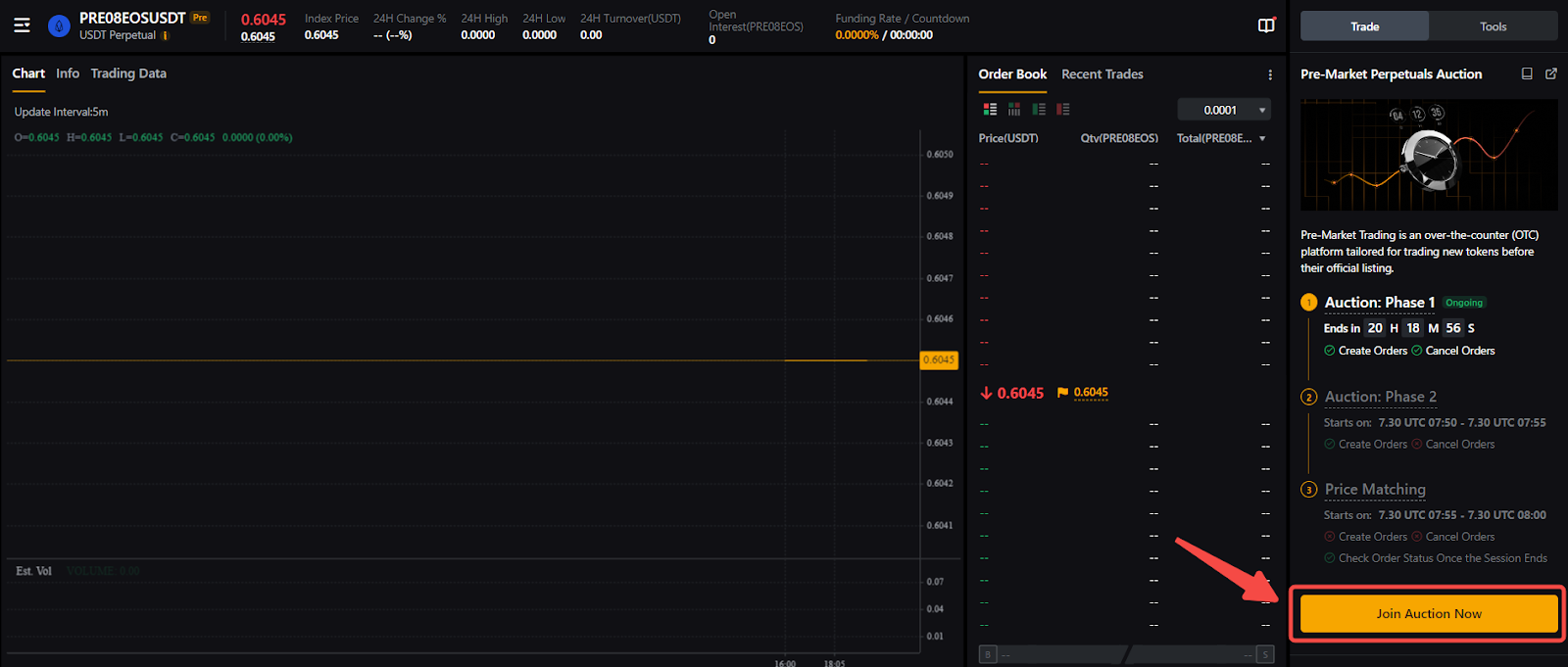 Step 5: Once the call auction ends and the contract is officially listed on the Pre-Market platform, it will enter the Continuous Auction stage.