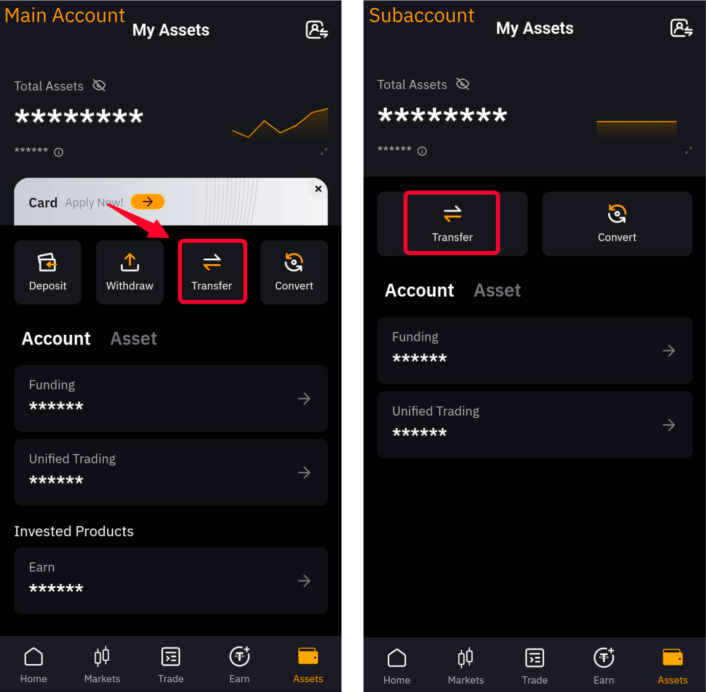 Transfer Assets Between Main Account and Subaccounts