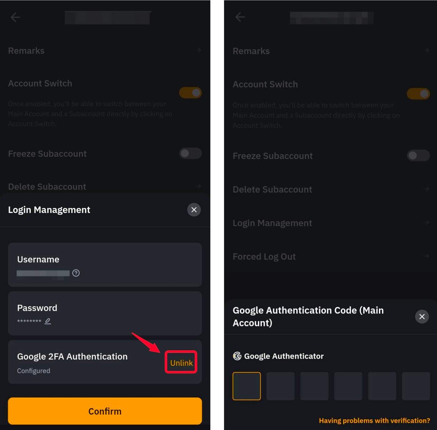 You will be required to enter the Google Authenticator code for your Main Account to effectively unbind the 2FA verification on your subaccount.