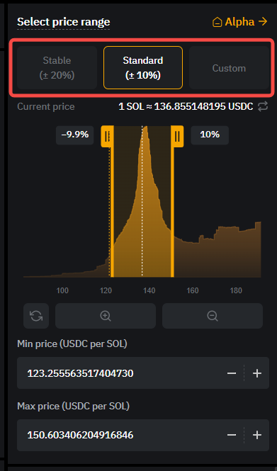 3. Custom: A fully customizable range for experienced users who wish to have more precise control over their liquidity positions.