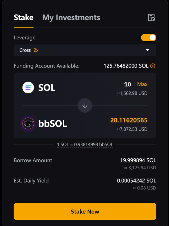 The expected amount of bbSOL you'll receive, calculated based on your leverage, staked SOL, and the real-time exchange rate between SOL and bbSOL.