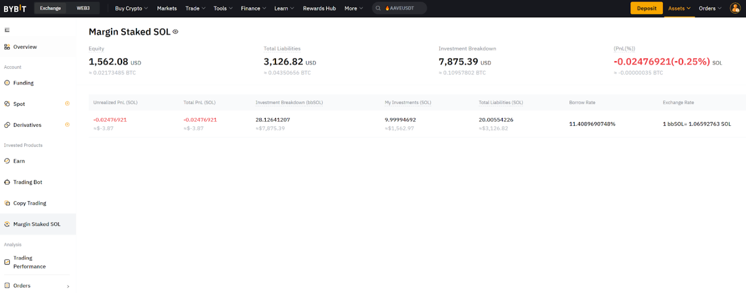 Step 1: On the right panel of the Margin Staked SOL page, click My Investments to view the following details: