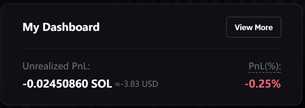 Alternatively, go to My Dashboard in the upper-right corner of the Margin Staked SOL homepage. Here, you'll see your Unrealized P&L and P&L(%). Click View More for detailed order information.