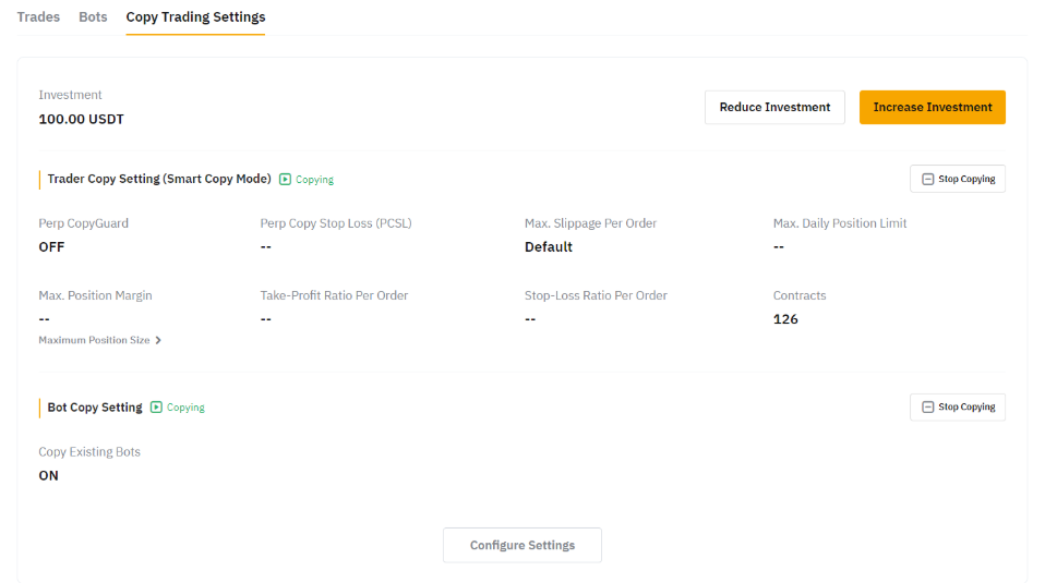 Copy Trading Settings