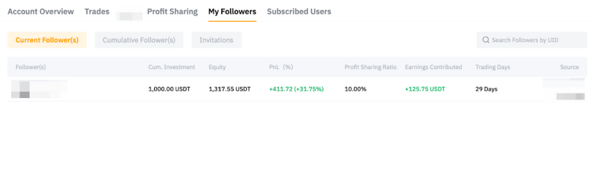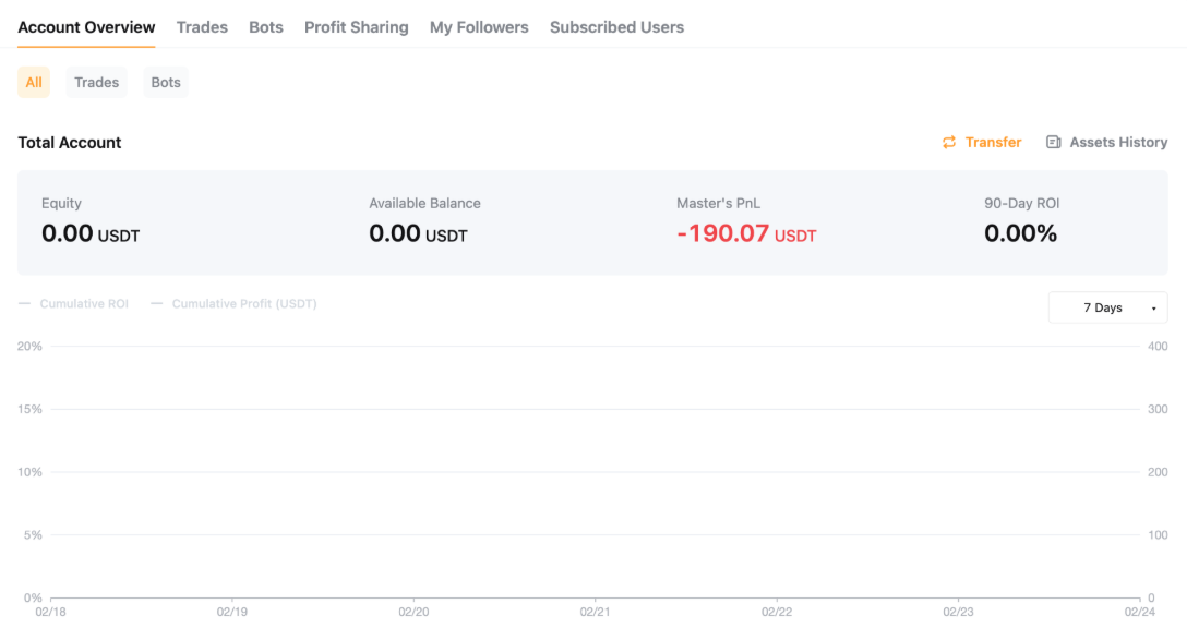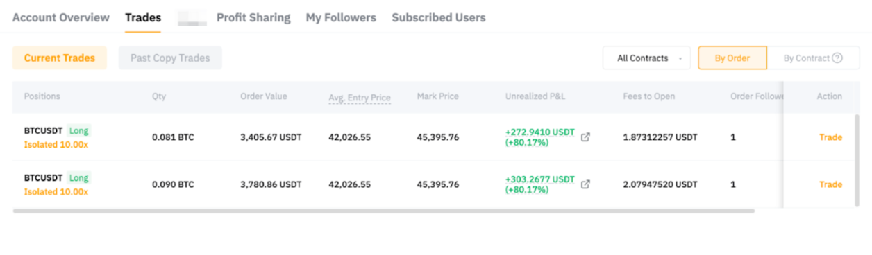 From the Copy Trading User Center (Master Trader), you can get an overview of your Copy Trading Account, including past performances, followers’ performances, and your order details.