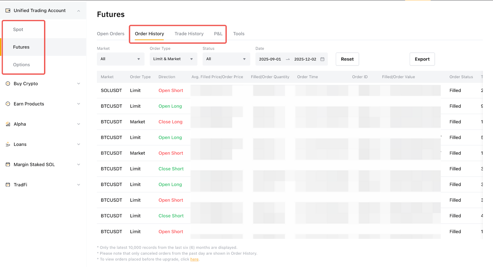 Order History via Unified Trading Order Page