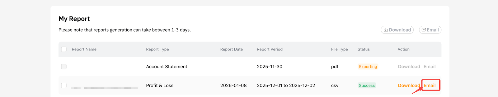 Step 1: Under "My Report", select the report you want to download, and click "Download".
