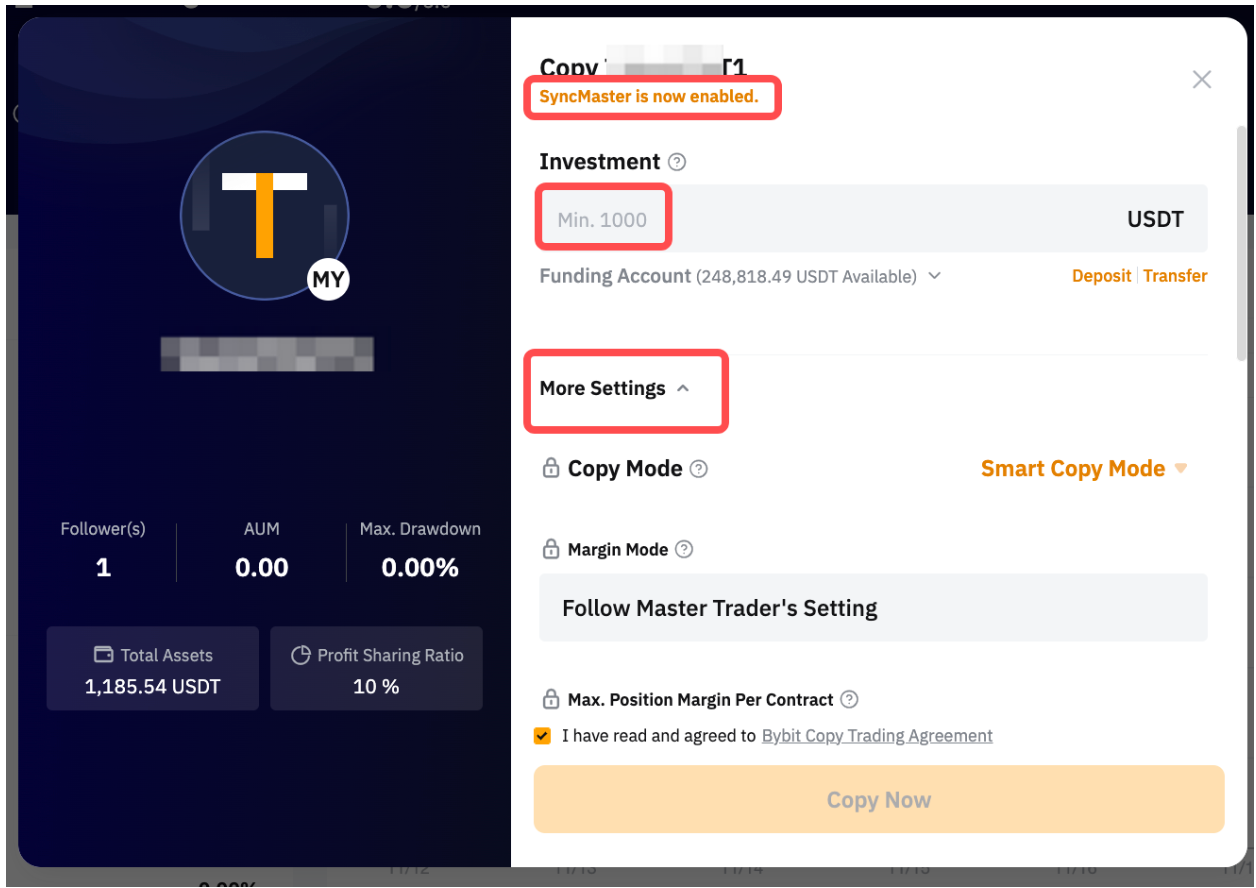 — If your Master Trader enables Forced Sync or modifies trading parameters, your copy trading settings will automatically synchronize. While an increased minimum investment amount will not affect ongoing trades, it's important to note that you cannot reduce your investment below the Master Trader's specified minimum.